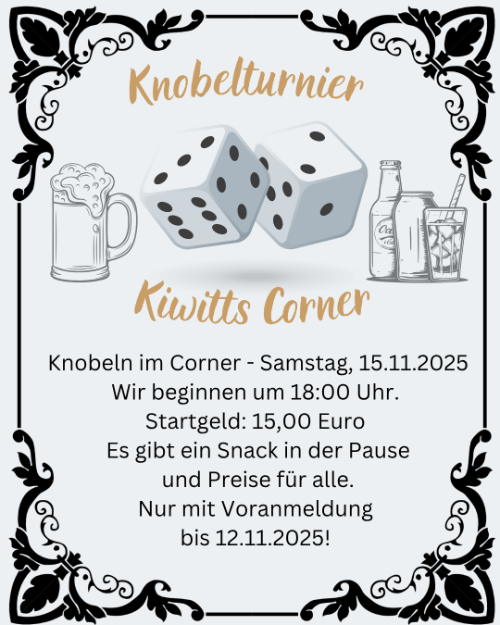 Jackpot Turnier 4.0 Turnier 3 am Samstag, dem 29.11.25 18.00h