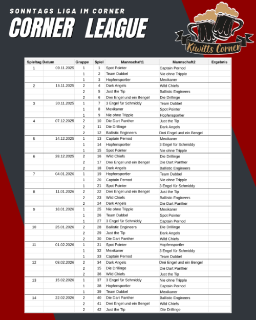 Wir haben zwei Serien für Euch. Zum einen unsere Jackpotserie, ein Turnier im Monat und unsere Corner League immer Sonntags.