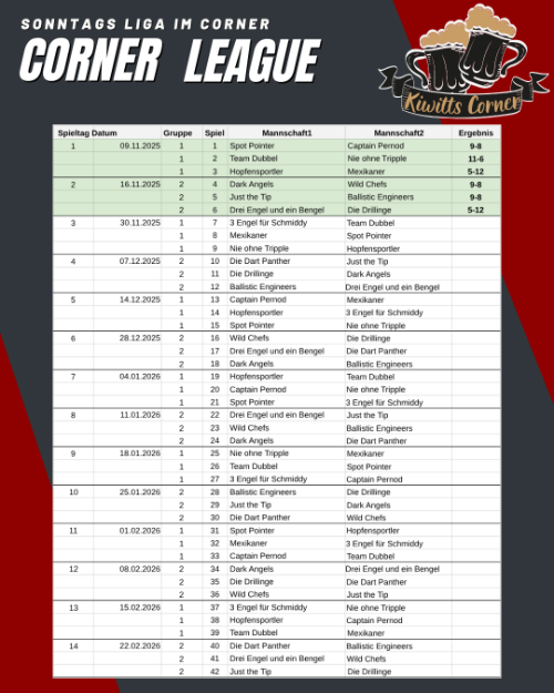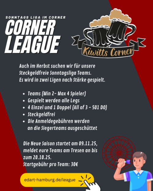 Wir haben zwei Serien für Euch. Zum einen unsere Jackpotserie, ein Turnier im Monat und unsere Corner League immer Sonntags.