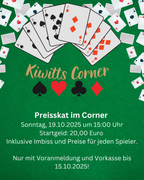 Jackpot Turnier 4.0 Turnier 1 am Samstag, dem 27.09.25 19.00h